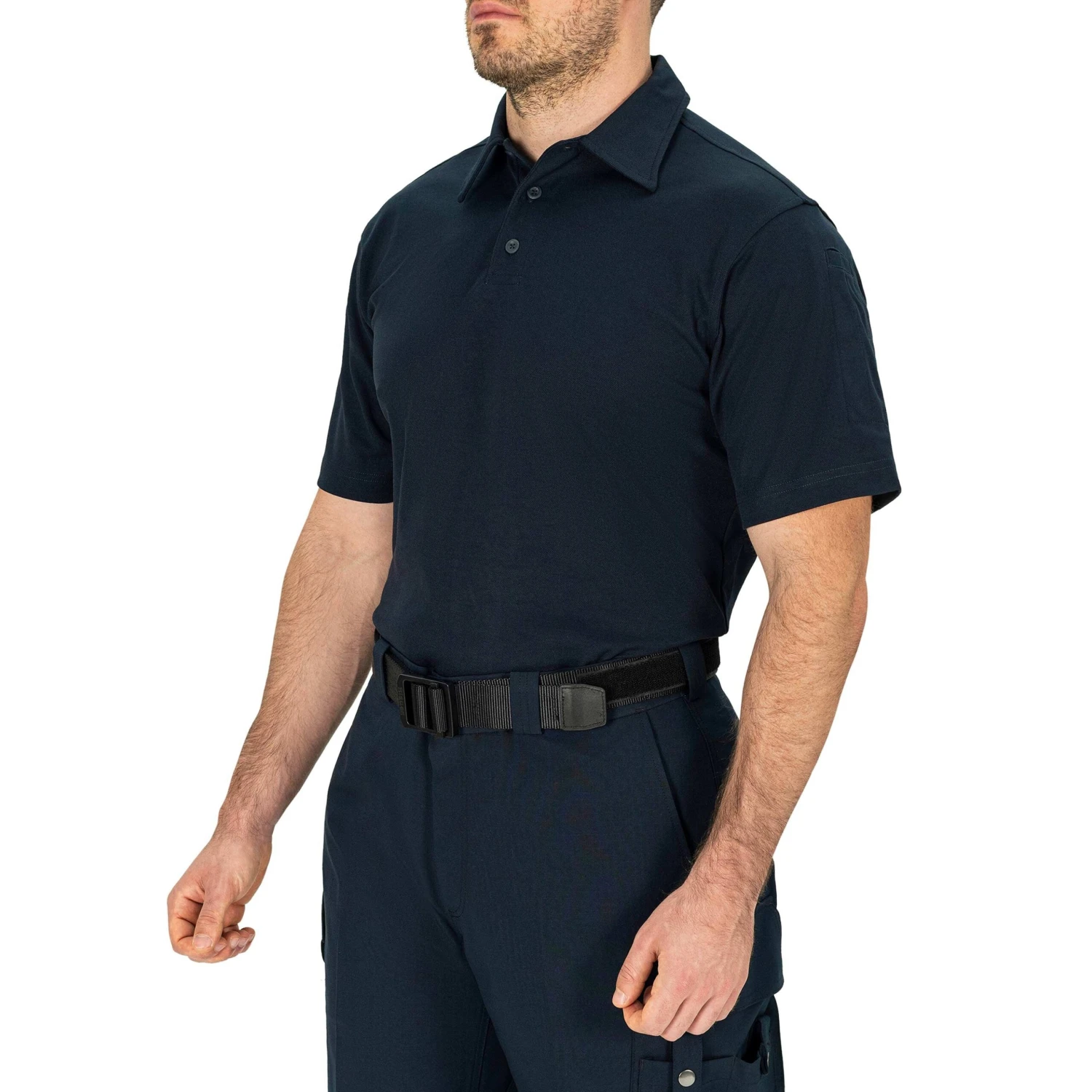 No fade polyester exterior and soft comfortable cotton interior make this bicomponent polo a popular uniform choice for a professional look. Self collar and cuffs for a perfect color match and more tailored look. Extra long shirt tails stay tucked in all day. Double pen pocket on left sleeve.